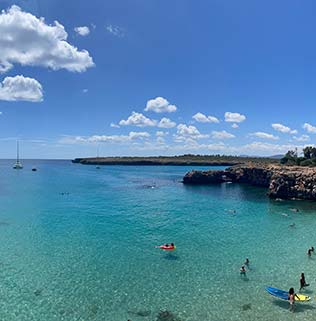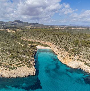 Bordeando la costa este de Mallorca desde Sa Coma hasta Calas de Mallorca, se despliega un paisaje de acantilados bajos, cuevas marinas y calas escondidas entre pinares. Solo en velero puedes acceder a lugares como Cala Petita, Cala Virgili, Cala Magraner o Cala Varques, donde el agua es cristalina y el silencio absoluto.